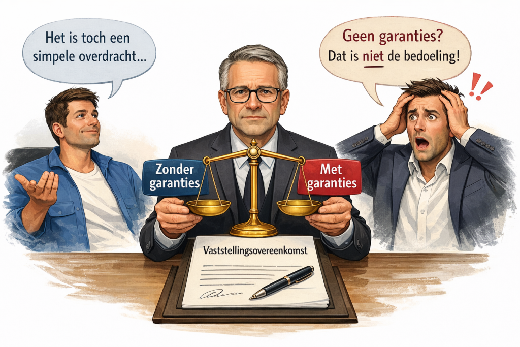 Het is namelijk een vaststellingsovereenkomst en die is ter voorkoming van een geschil en past bij de levering van de aandelen “as and where is”. En dat wil een koper vaak toch niet.